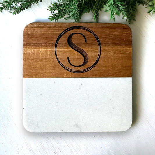 Marble & Acacia Coasters (Set of 2)