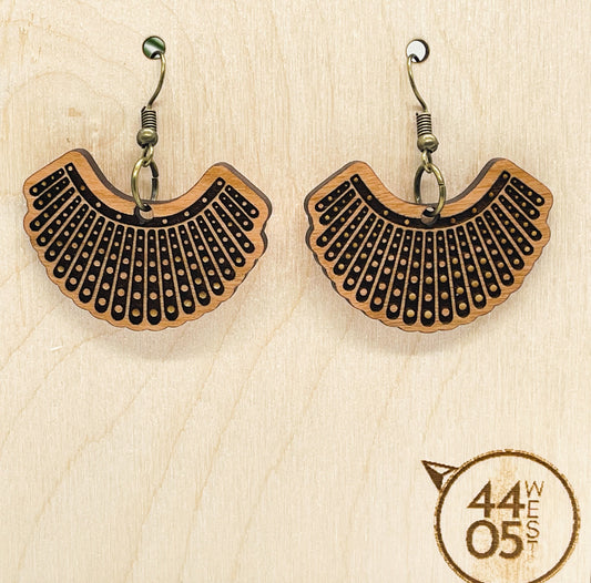 RBG Ruth Bader Ginsburg Dissent Collar Dangle Drop Earrings, Wood