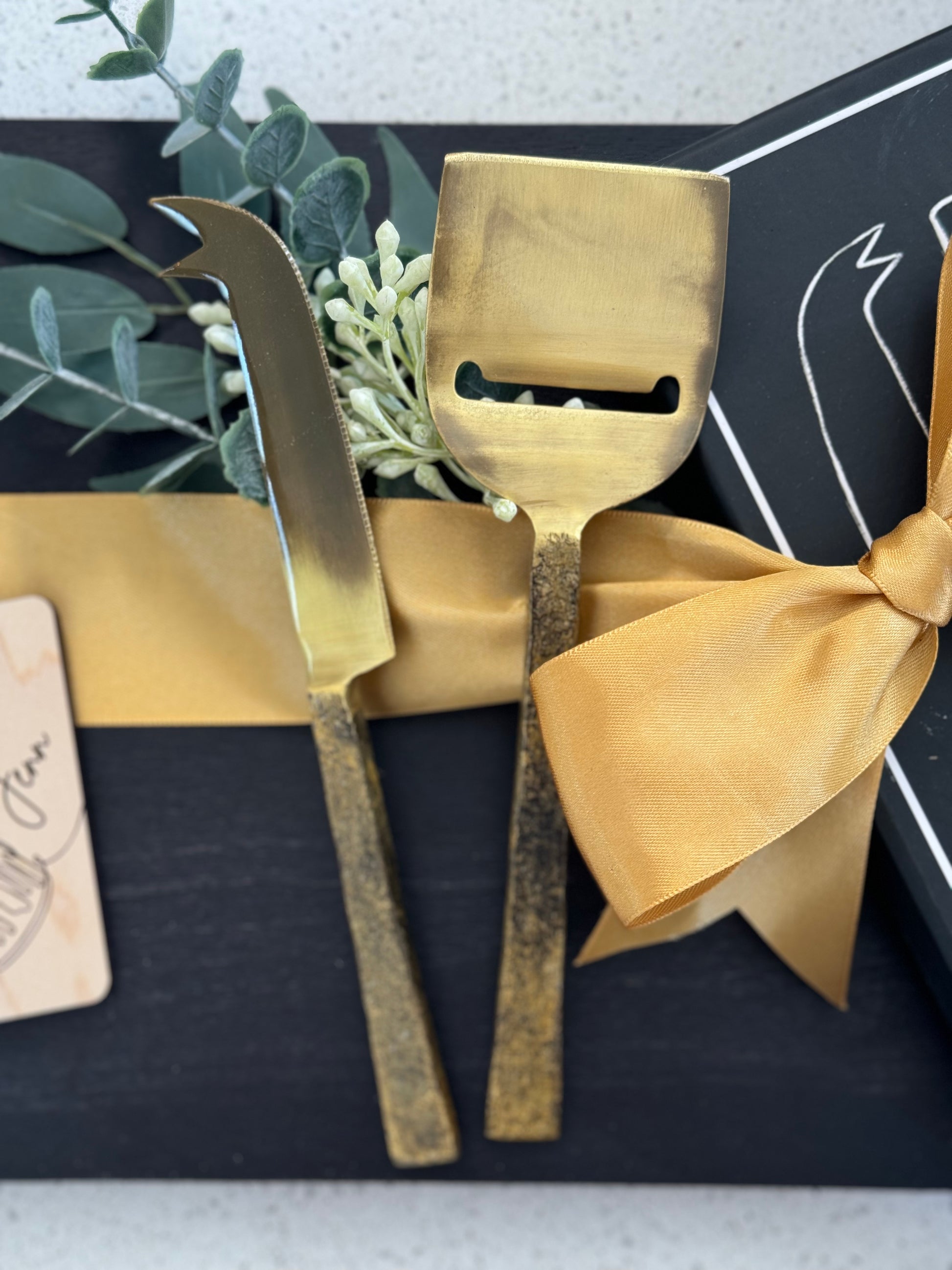 Black Charcuterie Board & Knives Set | Closing Gift | Realtor Closing Gift Set | Charcuterie Gift Set