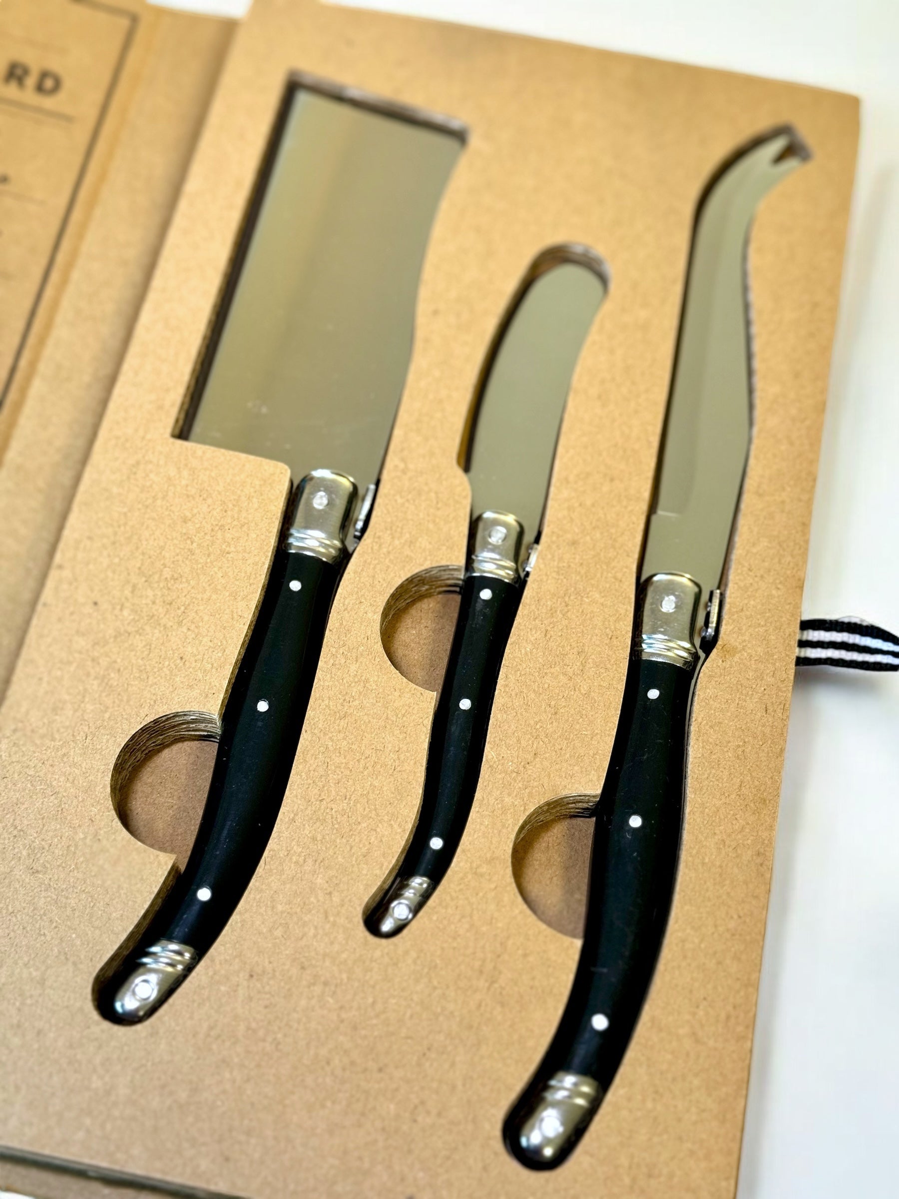 When it comes to cheese knives, you've got options to choose from! The listing photo features our gold hammered knife set. Other options include wood, champagne gold, black, pearl, grey, and limestone black. All options are also pictured in other listing photos.