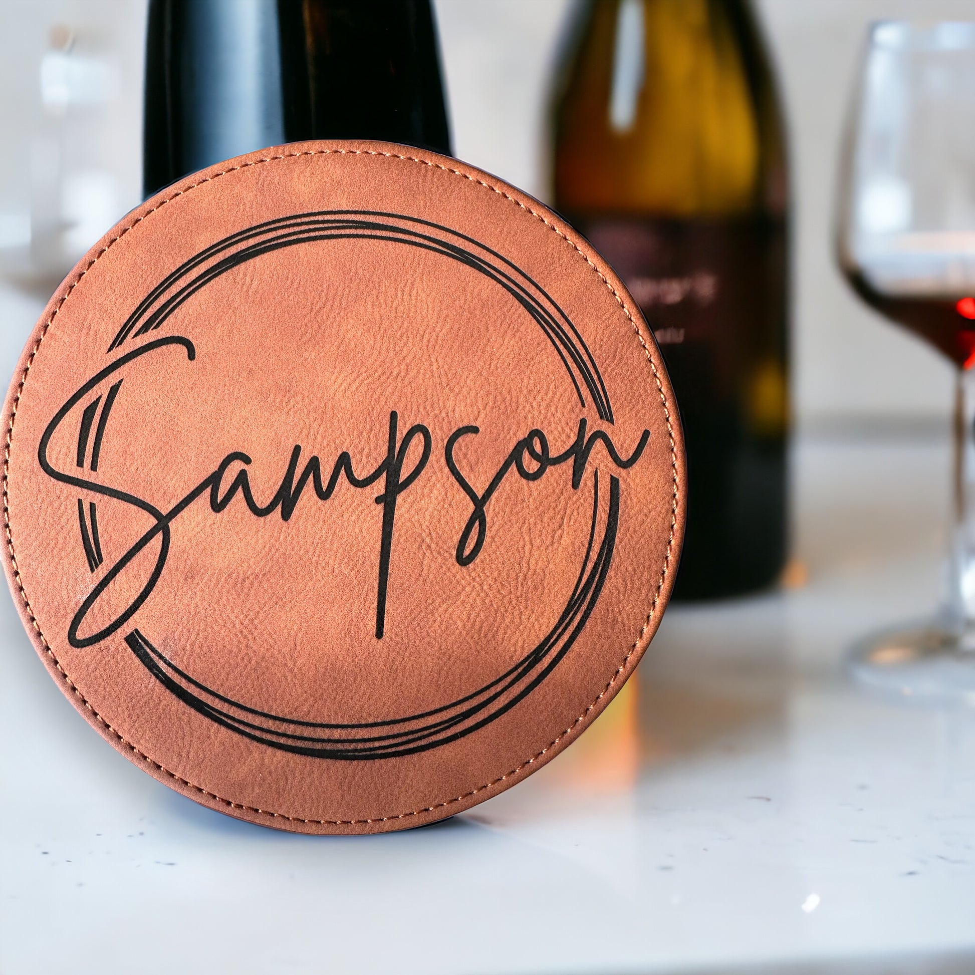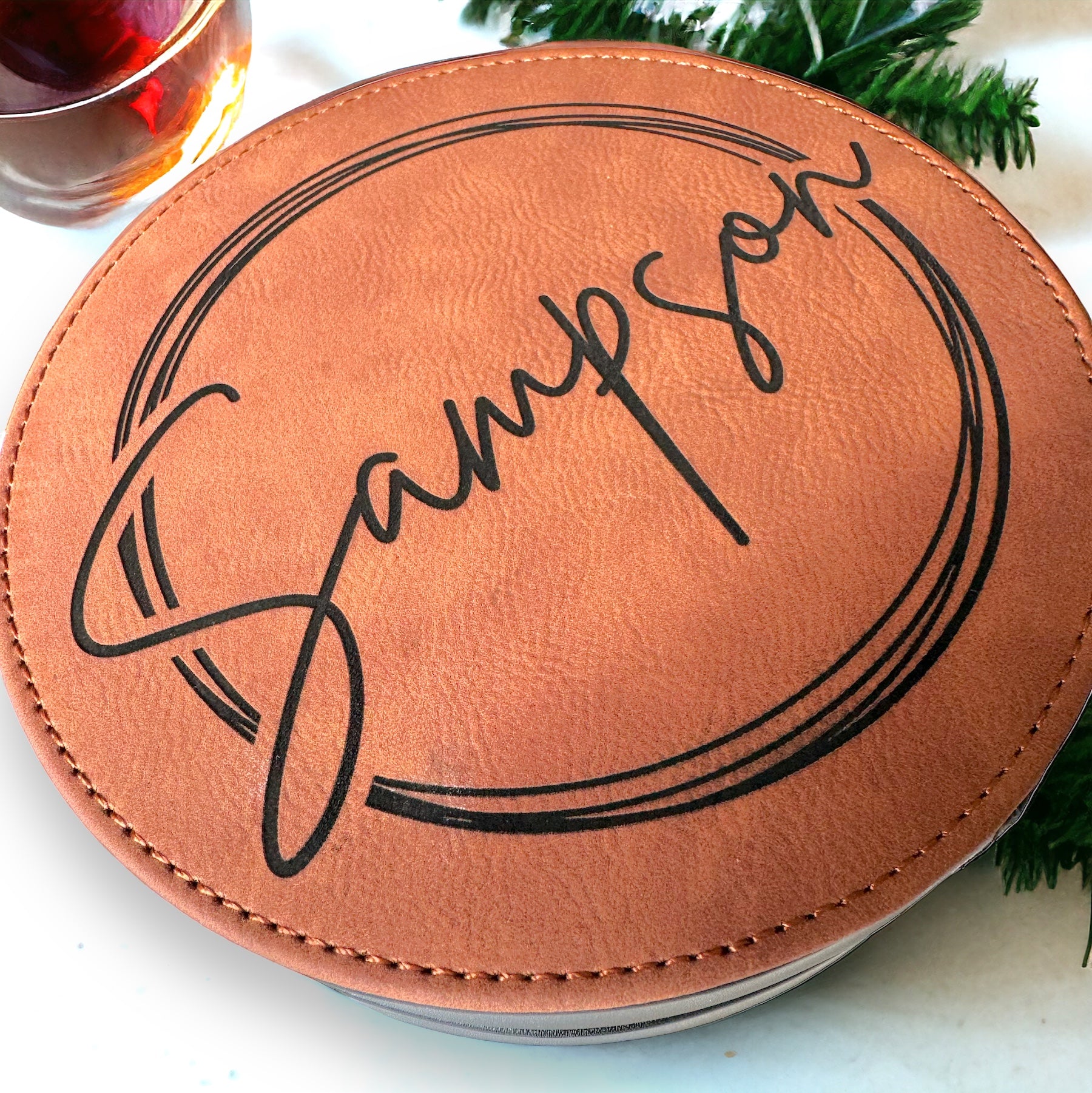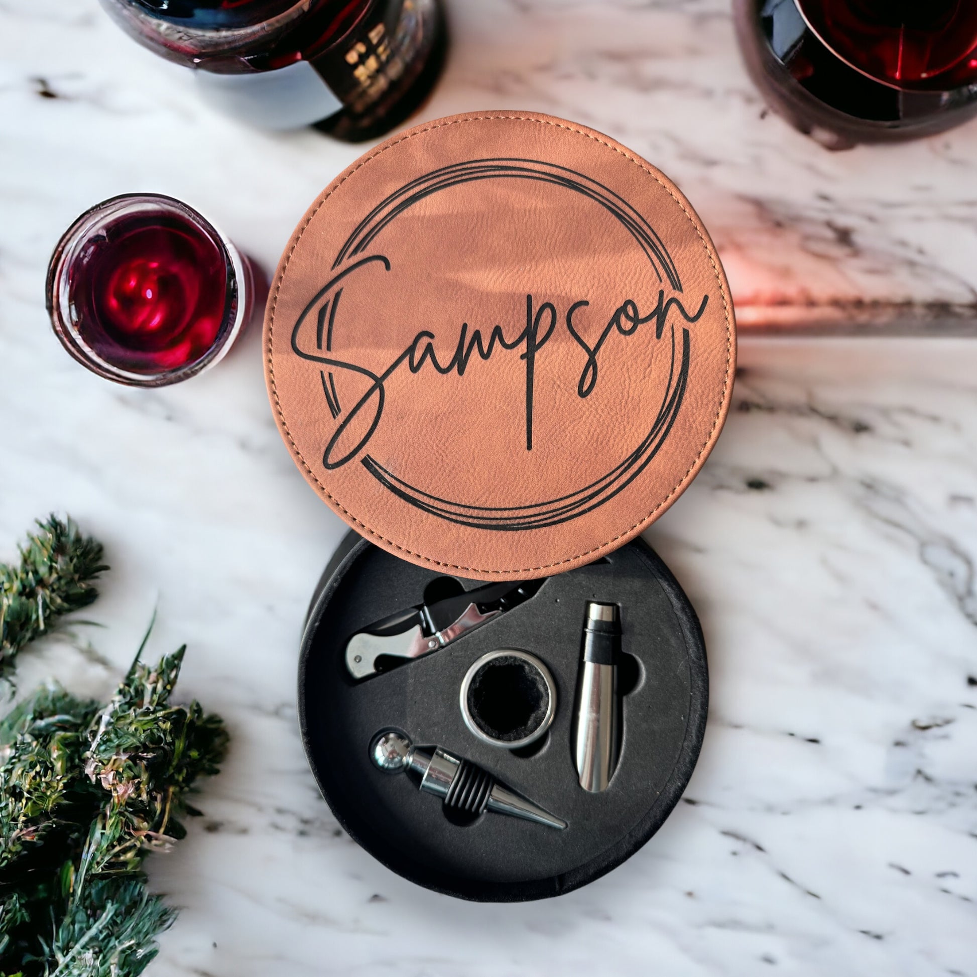 🏠 Vegan leather wine tool kit with brushed leather top that you can custom engrave (cognac color or black)