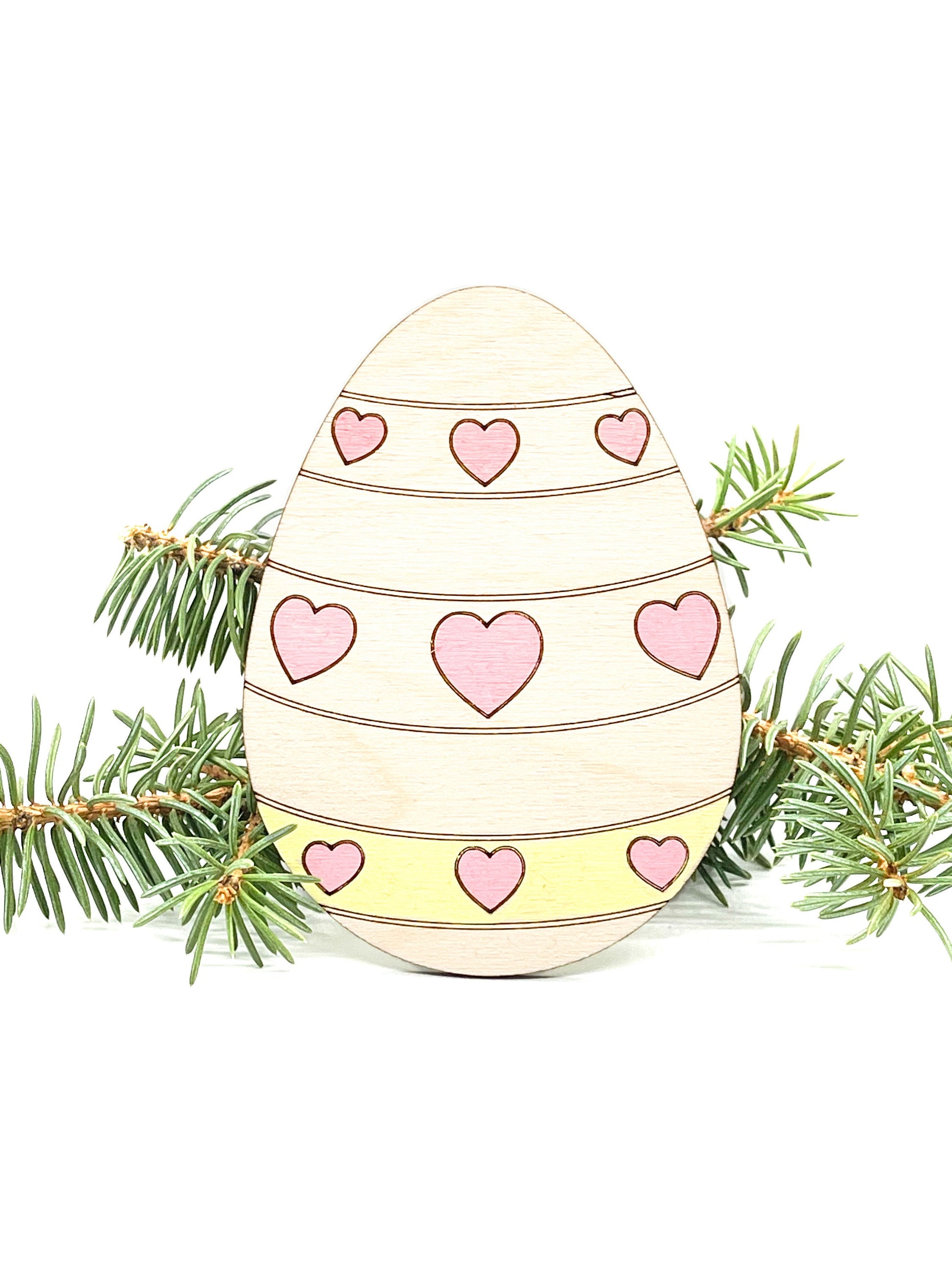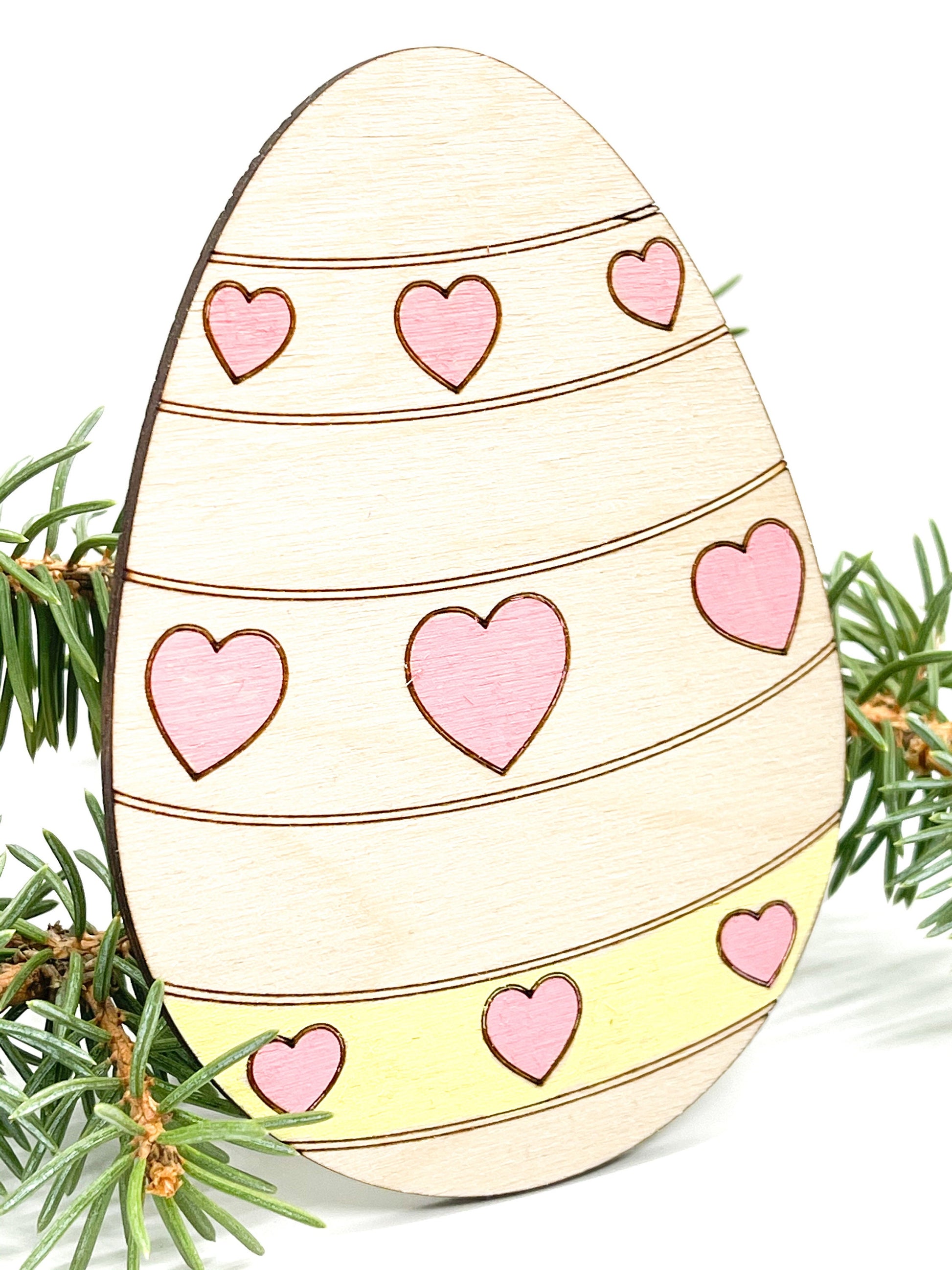 This kit comes with 10 unique wooden eggs, two bunnies (peeps!), acrylic paint and a paintbrush (paintbrush may differ from the one pictured.