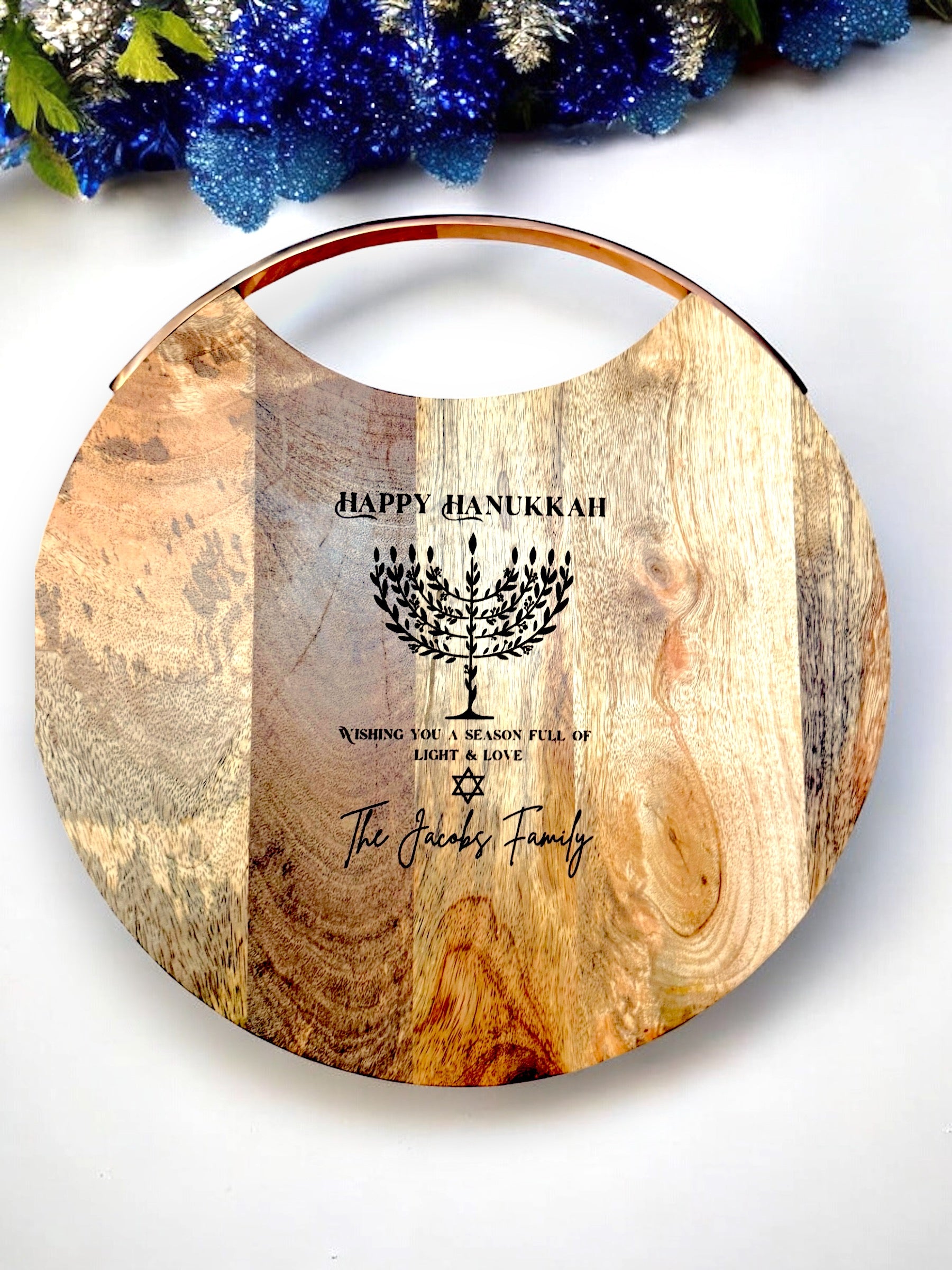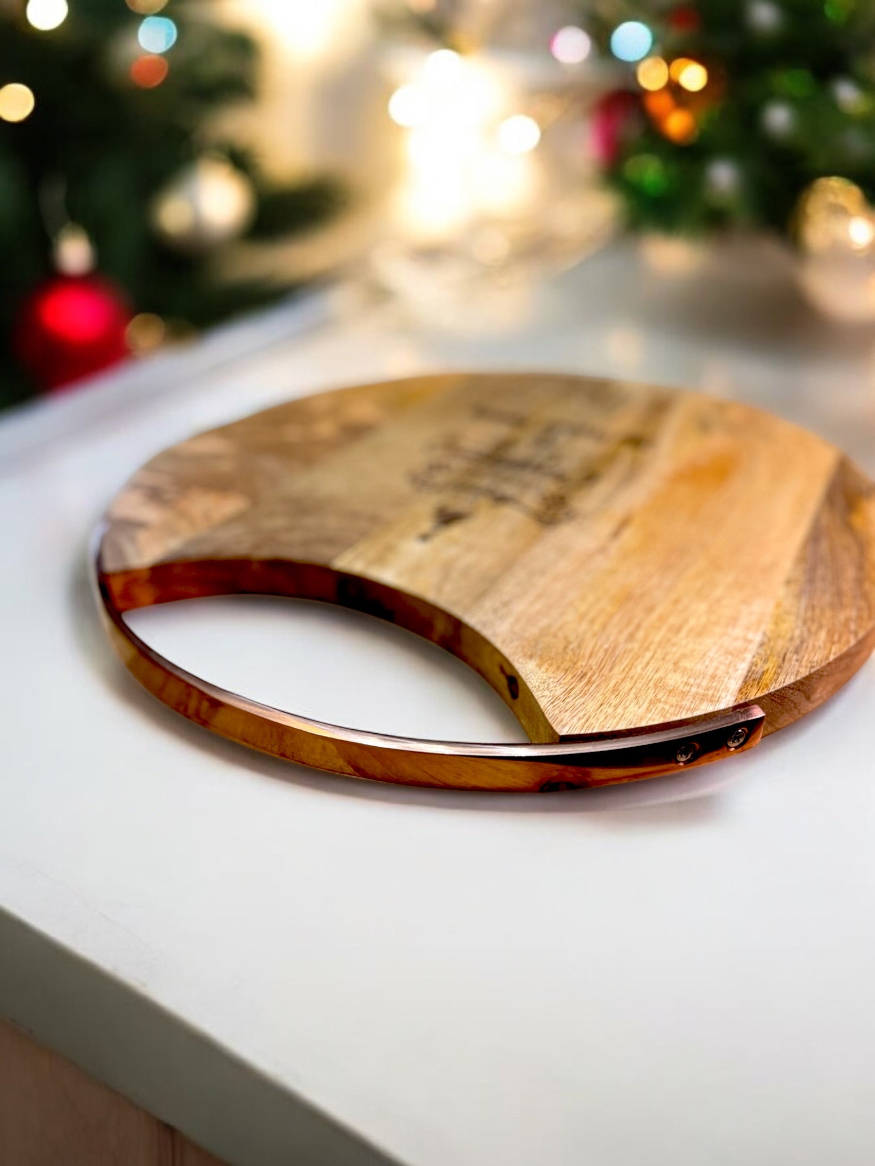 Option 3: Design Engraving - Included in every basket is a (approximately) 14.25” round mango wood charcuterie board with copper handle. We have 5 designs to choose from for engraving. Some holiday themed, some not! Be sure to put your design choice in the personalization box!