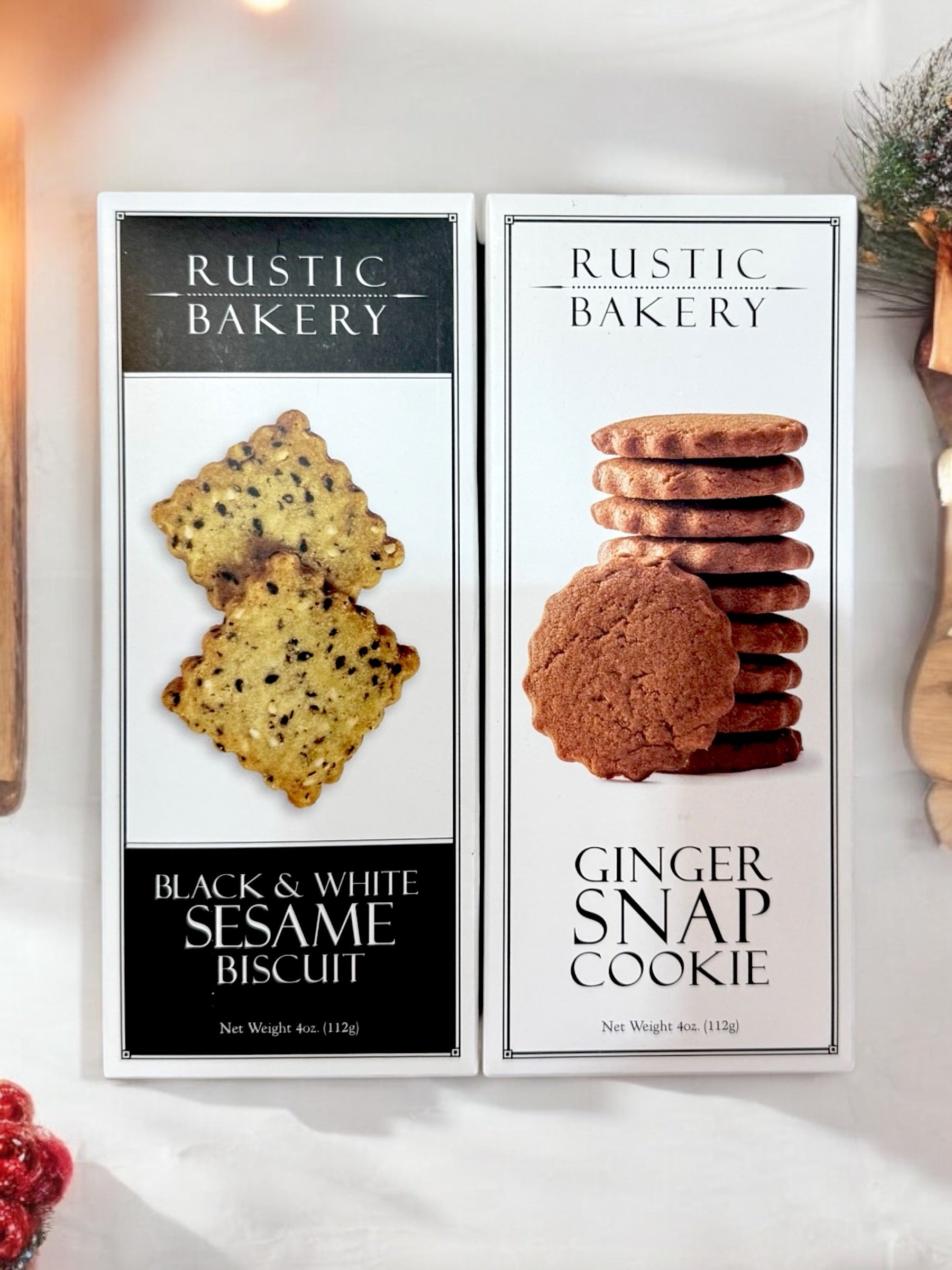 -1 box each sweet & savory biscuit crackers (black & white sesame, gingersnap)