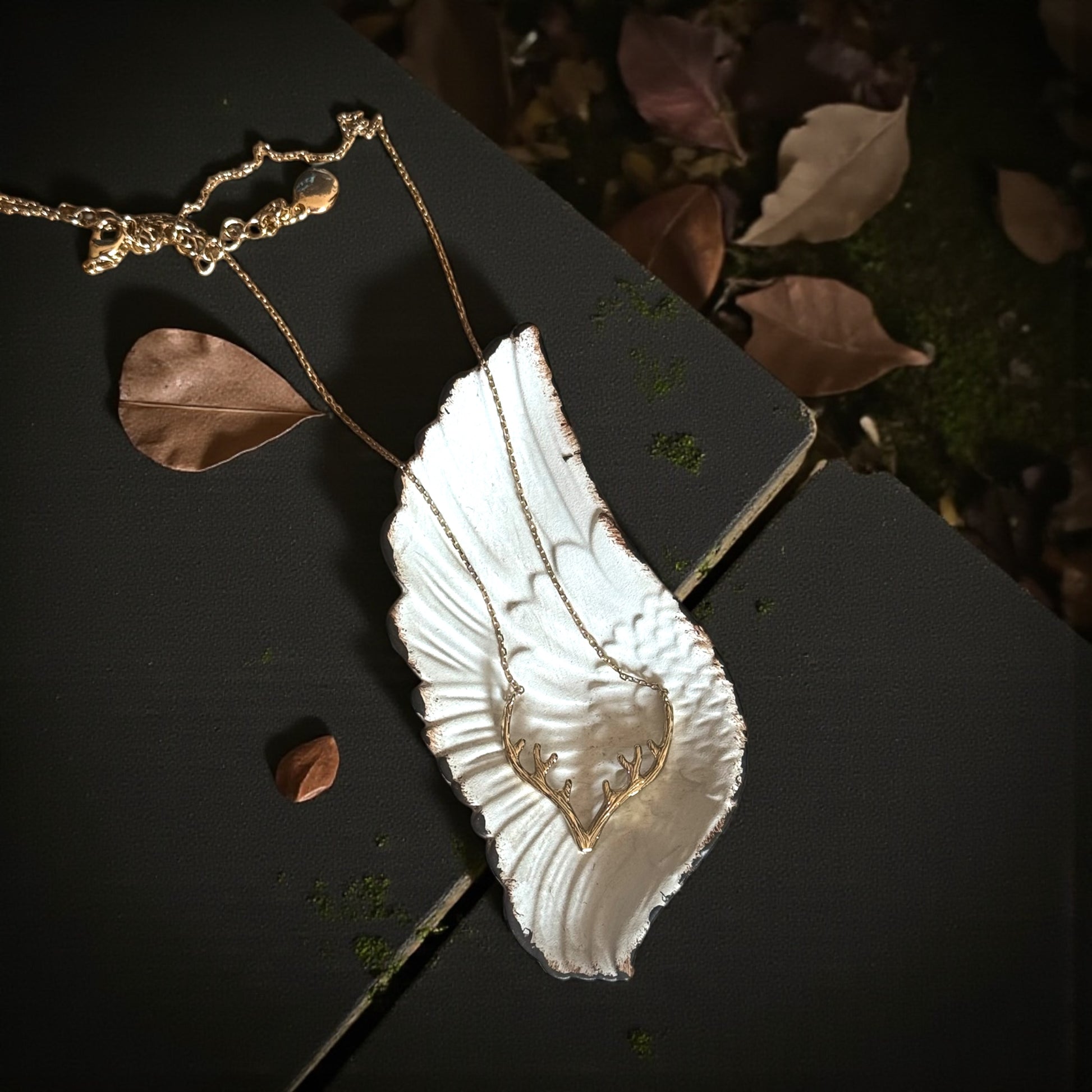 -White & gold resin stag figurine (standing or kneeling, perfect ring holder!)