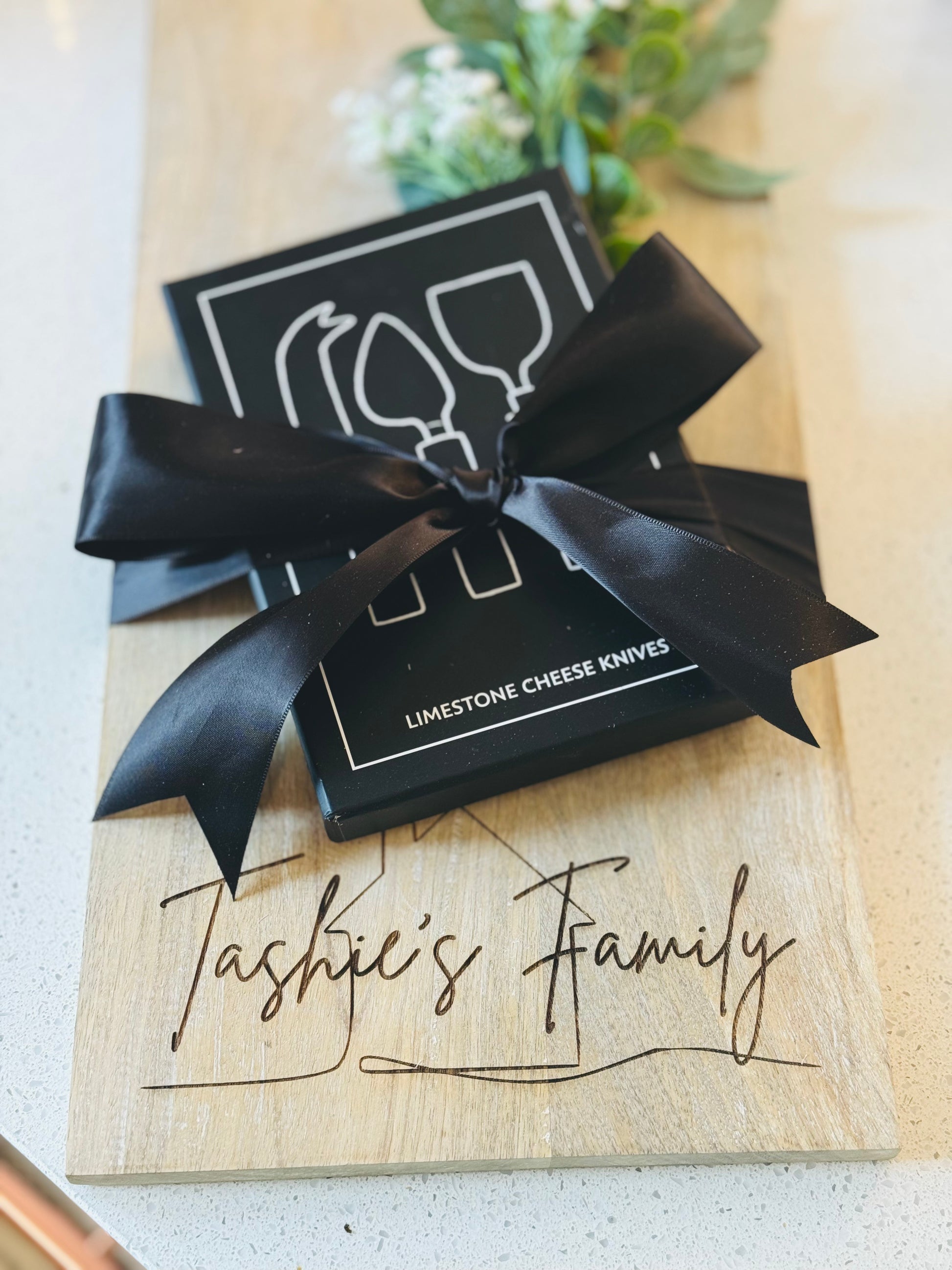 White Ash Charcuterie Board & Knives Set | Closing Gift | Realtor Closing Gift Set | Charcuterie Gift Set