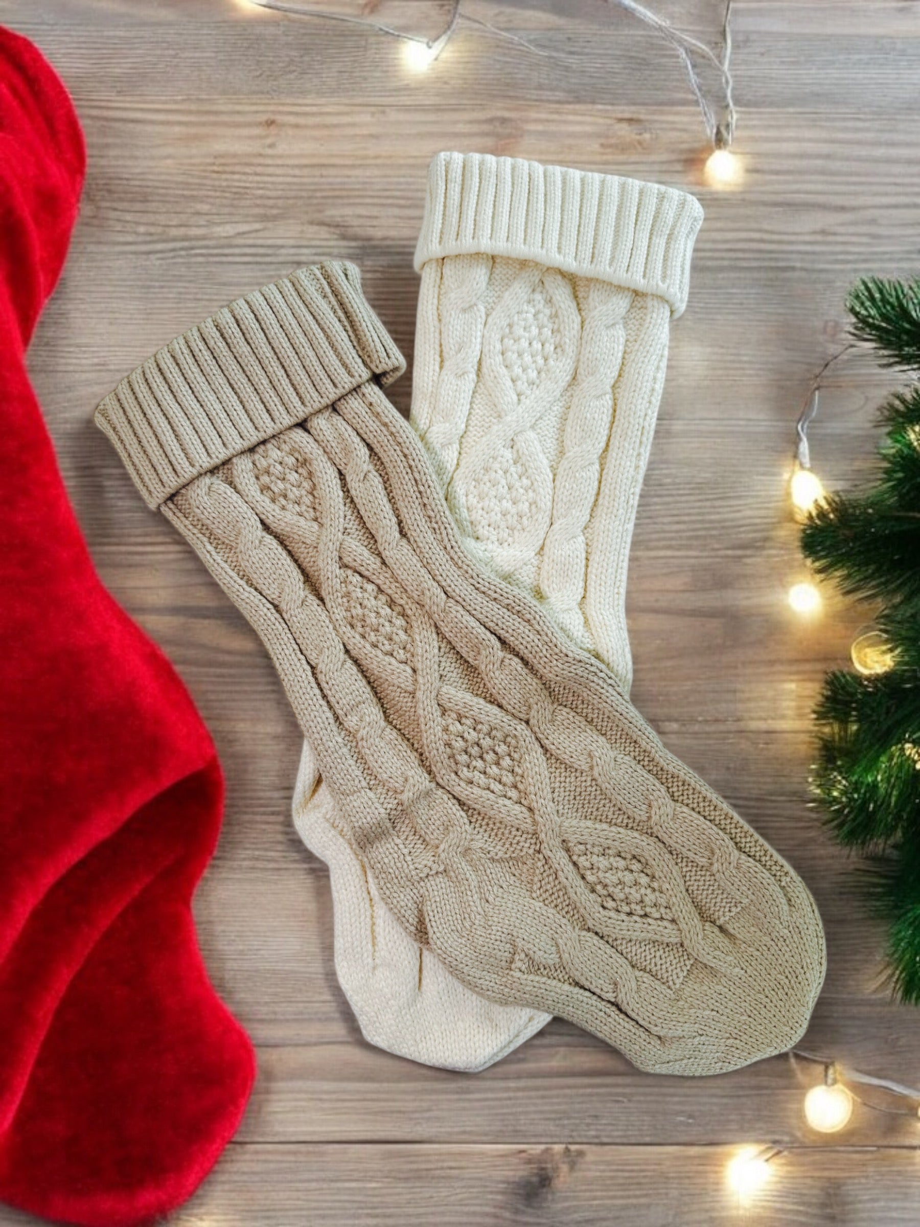 -Choice of ivory or khaki cable knit holiday stocking (LIMITED QUANTITY, ONLY WHILE SUPPLIES LAST)